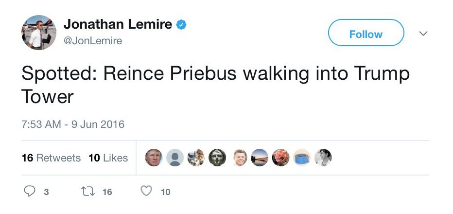Speaking of RNC, Paul Manafort, & Trump Tower: Reince Priebus was at Trump Tower on the day of the mtg w/Russians.https://twitter.com/RVAwonk/status/903339644955369472 …