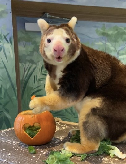 The cutest pumpkin in the patch. Happy National Pumpkin Day 🎃 Pumpkins aren't only great for decorating, they're great enrichment for our animals like LaRoo, the tree kangaroo. 📸: Keeper Macpic.twitter.com/3Z8BXjxu3F