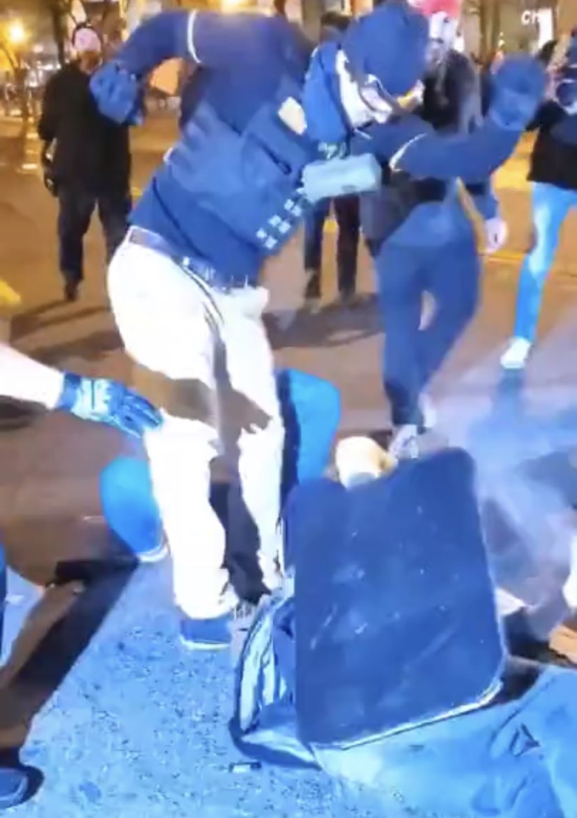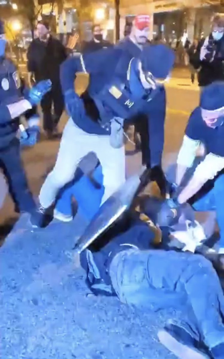These fascists were holding someone down and brutally stomping and kicking them until the police moved in to break it up. This happened in DC last night. They need to be identified.pic.twitter.com/PR0OaAkDEp