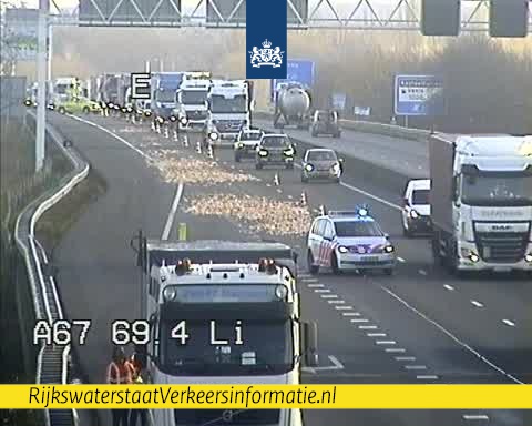 | Geen spekkie naar mijn bekkie deze afgevallen lading varkenshuiden op de #A67 bij Velden richting Eindhoven. Werkploegen en cleaner zijn onderweg. #hoedanpic.twitter.com/z4jIKhfKdy