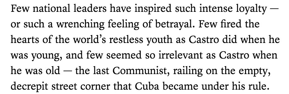I'm looking forward to reading all the canned Castro obits being published; the newspapers have had decades to get them polished.