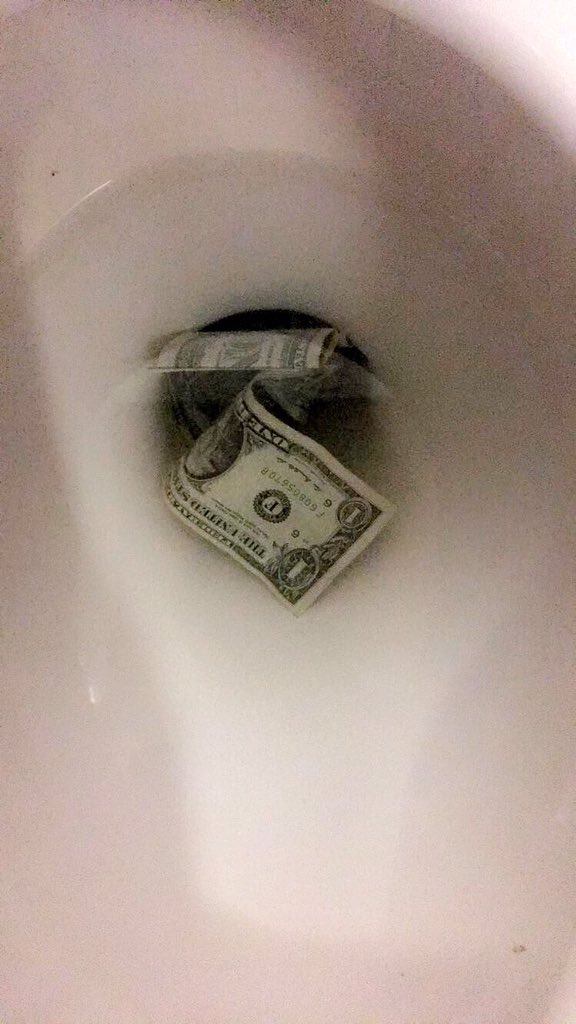 I just flushed what looked like $10 down the toilet. It was there when I got there and I had to go!