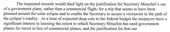 Did Steven Mnuchin & Louise Linton use a gov't plane to get a better view of the eclipse? We FOIA'd to find out. https://www.citizensforethics.org/foia/august-23-2017-u-s-department-treasury-mnuchin/ …pic.twitter.com/wFJCYlwcLZ