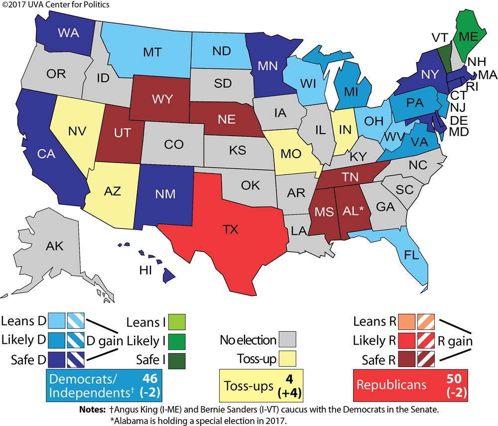 Two good points for Dems here. Flake (R-AZ): Leans GOP to Toss-up Heitkamp (D-ND): Toss-up to Leans Demhttps://twitter.com/kkondik/status/900713717788270592 …