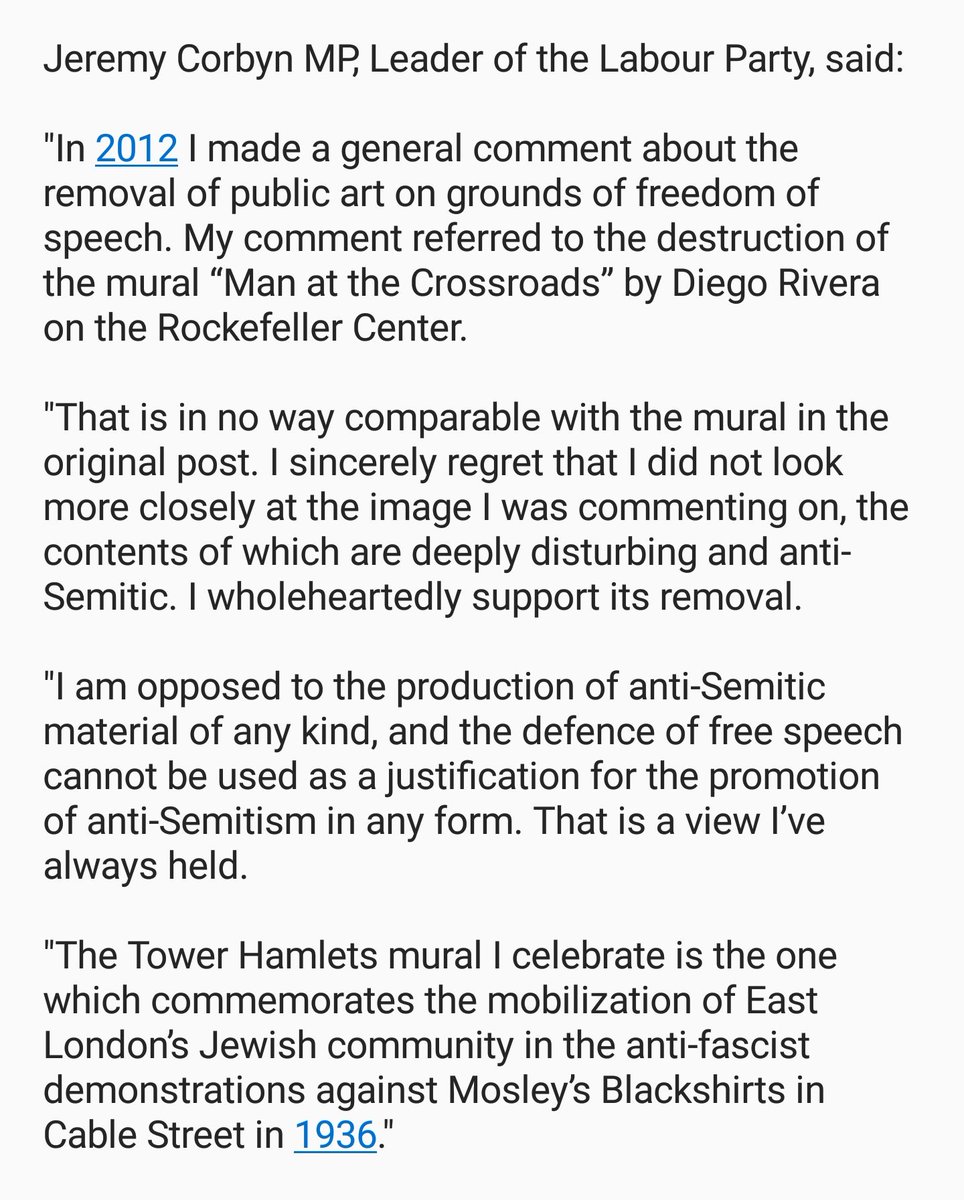@lucianaberger. I am sickened by the reference to the Cable Street mural, which represents a time the then overwhelmingly Jewish east end had to fight for its own safety against fascists because authorities failed us. Never again.https://twitter.com/paulwaugh/status/977267689885523969 …