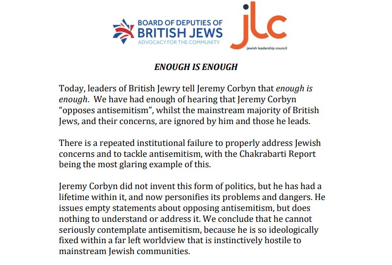 Very powerful letter by the Board of Deputies of British Jews and Jewish Leadership Council on Labour anti-Semitism row.pic.twitter.com/RF83xuORyZ