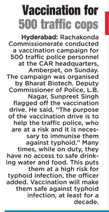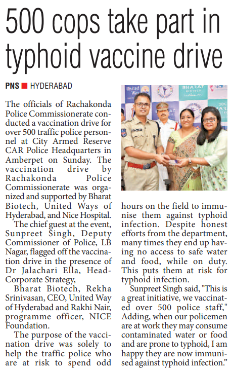 Over 400 police personnel vaccinated for Typhoid at Rachakonda Commissionerate Our sincere thanks to