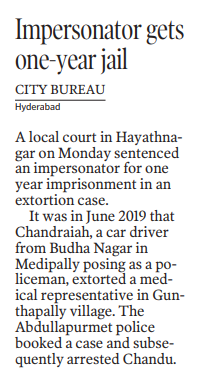 #impersonator for one year#imprisonment in an#extortion case.pic.twitter.com/uYYCcDwrDW