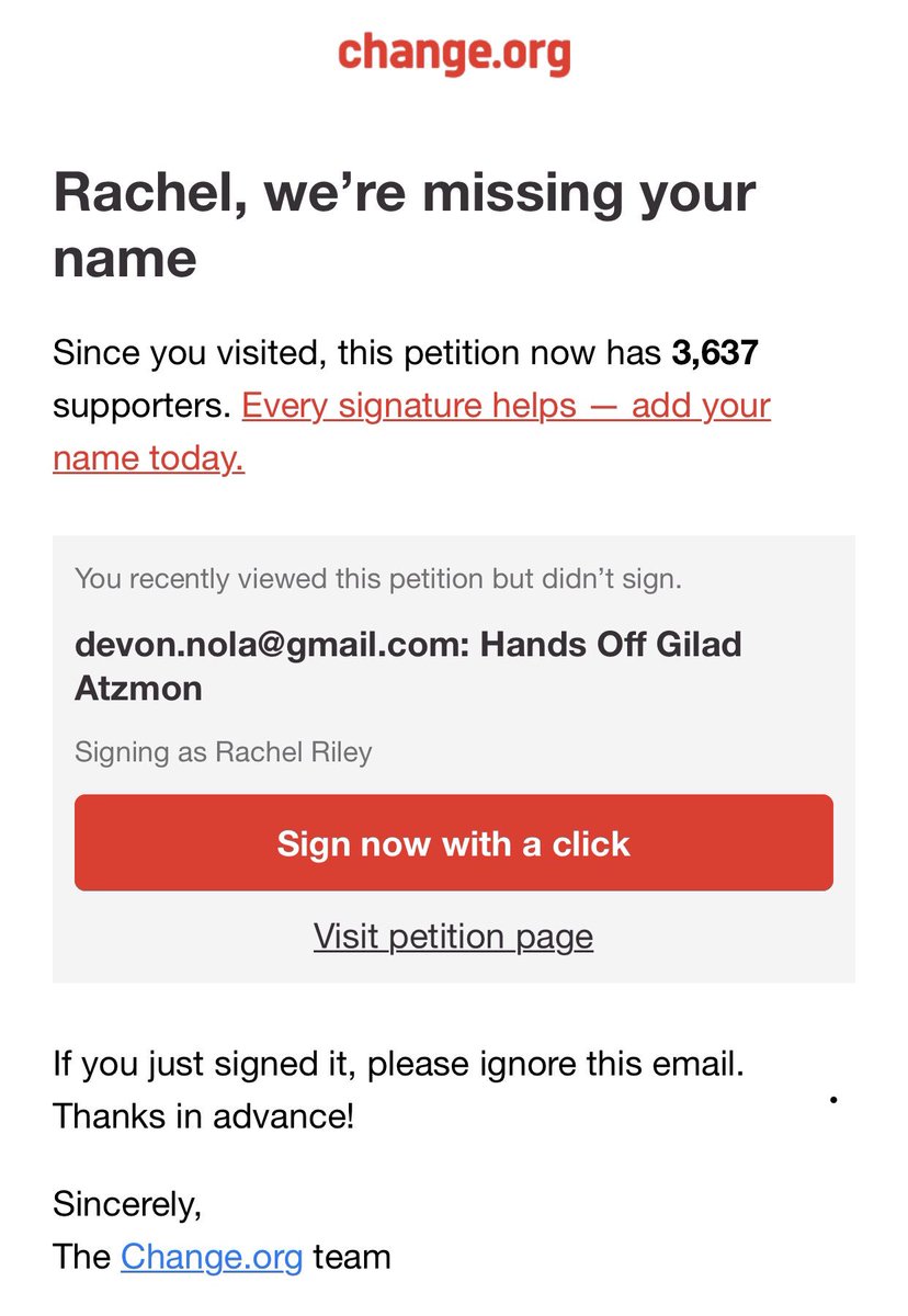 @ChangeOrgs I will not support a virulent antisemite. Sincerely, Rachel Rileypic.twitter.com/jVLMCiKNwW