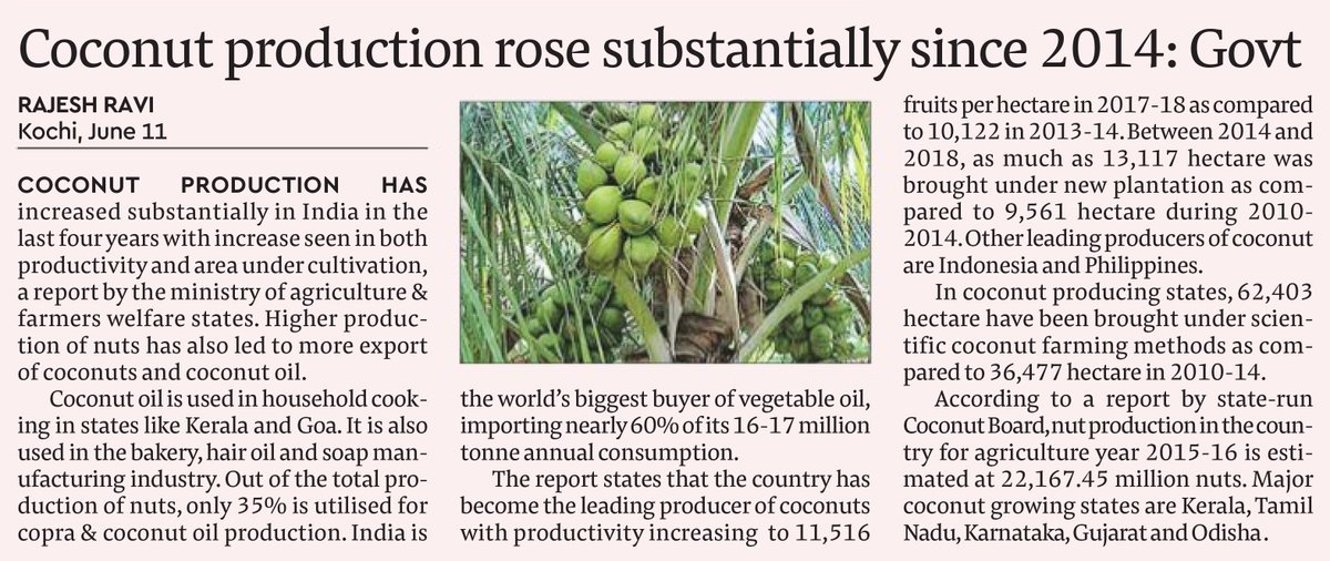 Dear Sir A coconut tree needs 7-8 yrs production, and ur govt is just 4 yrs. The news clipping no where mentions the cultural practices undertaken