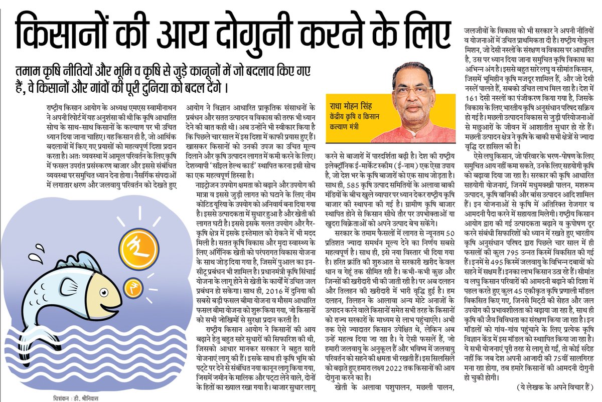 Very nice article on doubling farmers income through central government as well as state government aid. In my opinion value addition and allied activities must be funded by the Bank on concessional rate of interest along with storage capacity building at farm level.