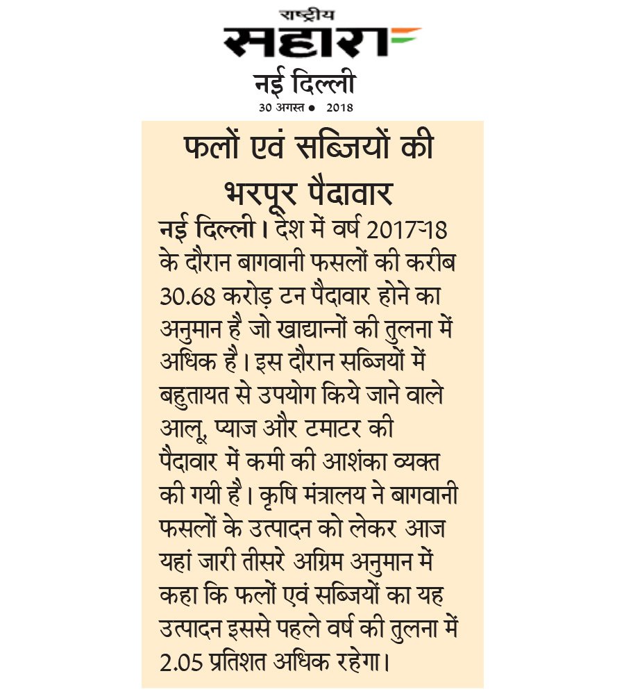 तेरे को सही जानकारी ही नहीं है ,ये झूठी रिपोर्ट कहाँ से लाए अब की बार फलों और सब्जियों का उत्पादन 20% कम हुआ है मगर फिर भी किसानों का माल सिर्फ 2-3 रूपये किलो के हिसाब से बिक रहा है, हाँ व्यापारी पिछले साल की तुलना में 15-20% मंहगे जरूर बेच रहे हैं