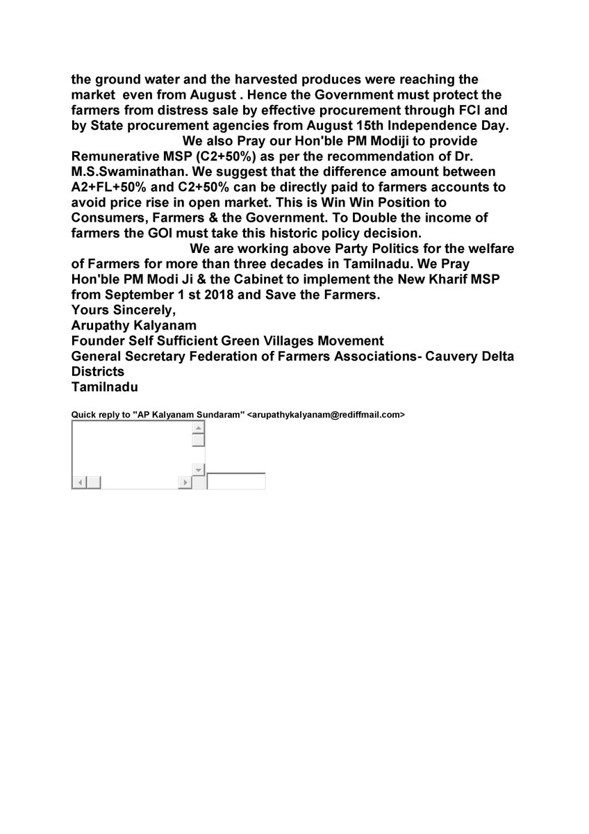 Sir, Please implement the New Kharif MSP from September 1 st as implemented in 2016-17. We for the past 20 days struggling to reach our Hon'ble Radha Mohan Singh Ji. Regarding this we also sent e-mail dated 8-9-2018 .More than 150 tweets to GOI. No Responsepic.twitter.com/4CbiZ8HZVa
