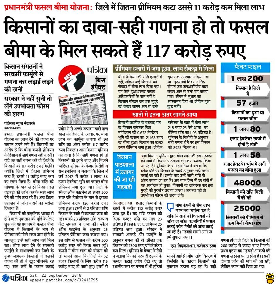 यहाँ बेगूसराय (बिहार) के पंजाब नैशनल बैंक की राहतपुर शाखा ने 14-9-2018 को खरीफ 2016 के बीमा दावों का भुगतान किया है उसमें भी आधे से कम किसानों को ज्यादातर बीमित किसानों के साथ धोखा हुआ।
