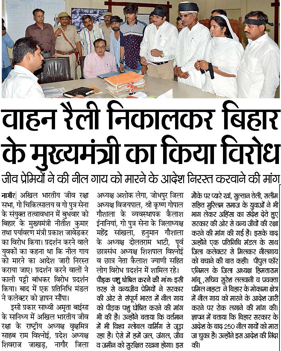 @bjpsamvad@Bihar_BJP@SushilModi @बिहार में फसल बीमा में नीलगाय से खराबा जोड़ा जाये उनको मारना बंद करे
