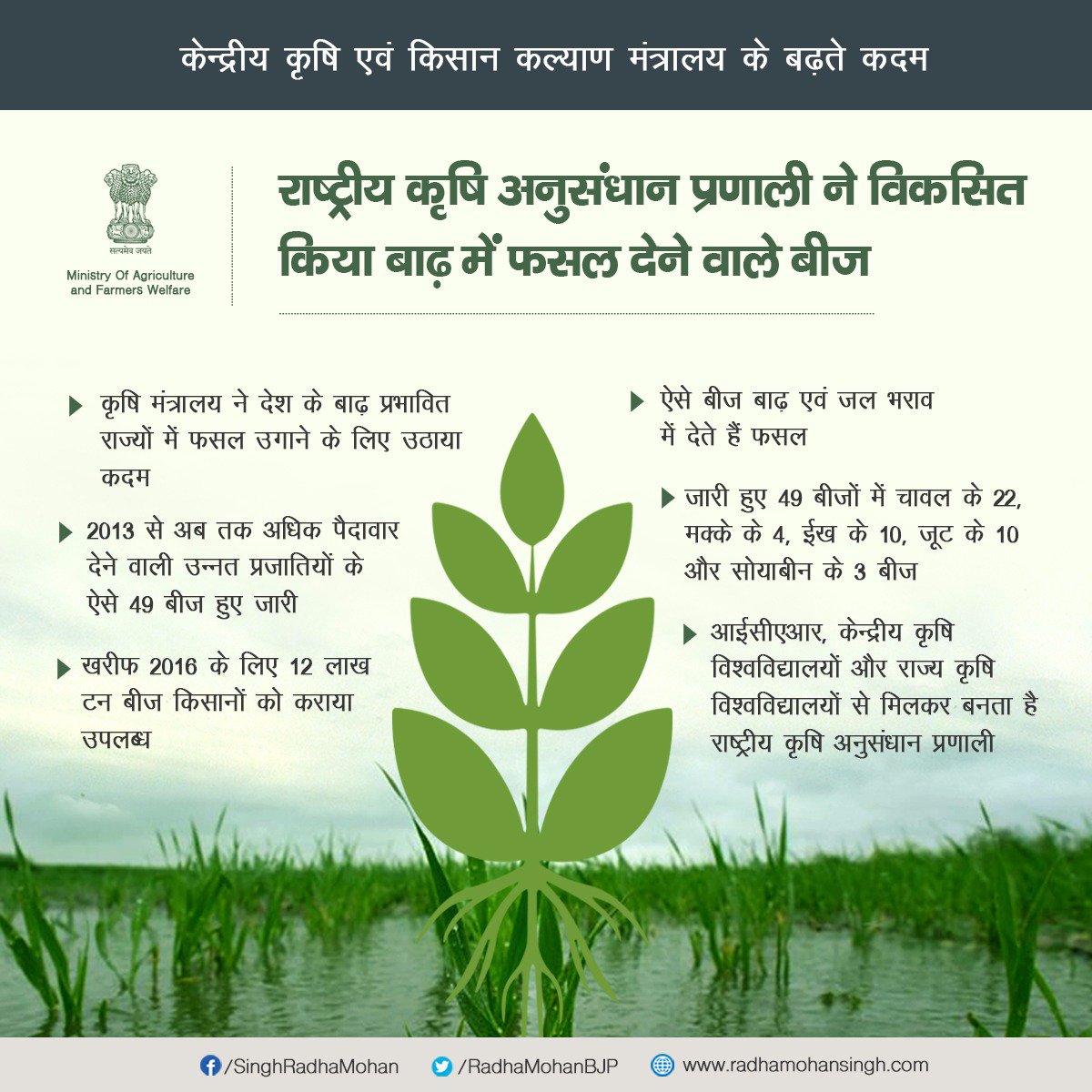 राष्ट्रीय कृषि अनुसंधान प्रणाली ने विकसित किया बाढ़ में फसल देने वाले बीज। #TransformingIndiapic.twitter.com/NxmPXu3vVp