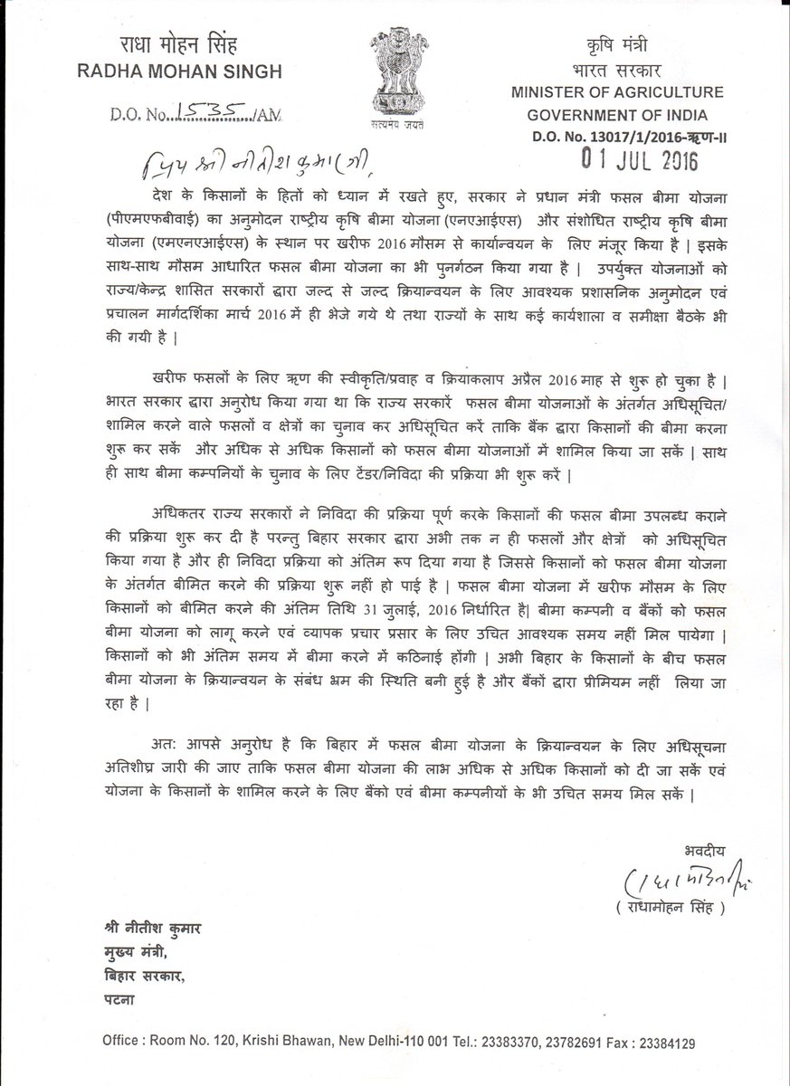 किसानों की सुविधा को देखते हुए सरकार ने प्रधानमंत्री फसल बीमा योजना की अंतिम तिथि 10 अगस्त 2016 तक बढ़ाई #PMFBYpic.twitter.com/rFs2Ap32Mm