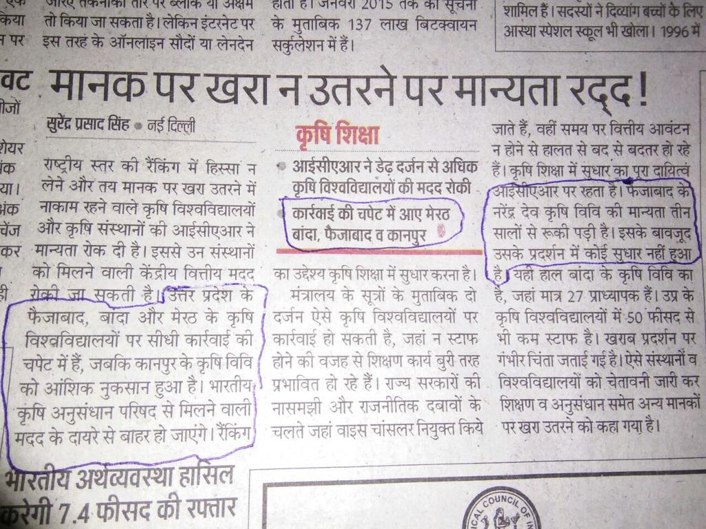 मंत्री जी नरेंद्र देव कृषि एवं प्रौद्योगिकी विश्वविद्यालय फैजाबाद उत्तर प्रदेश में कर्मचारियों का अत्यंत अभाव है शुद्ध परियोजनाएं बंद है