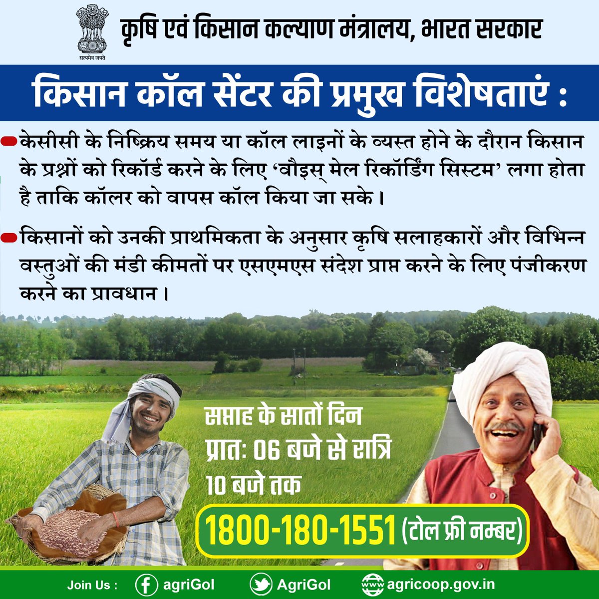 किसान कॉल सेंटर की प्रमुख विशेषताएं।