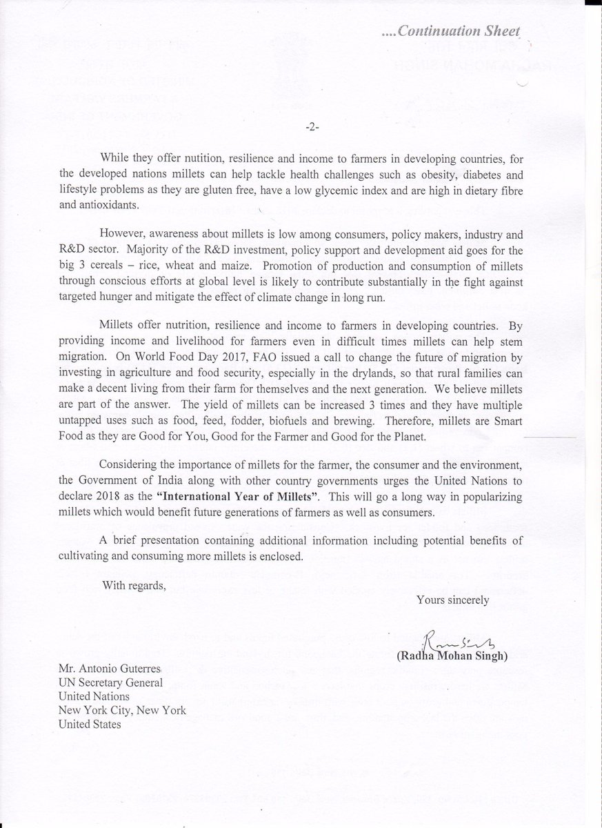 @UN will take a favourable decision on the issue raised by Hon'ble@RadhamohanBJP as the promotion of cultivation of millets is in the larger interest of humanity for agricultural sustainability and nutritional benefits! Best wishes!!Thanks. Twitter will use this to make your timeline better. UndoUndo