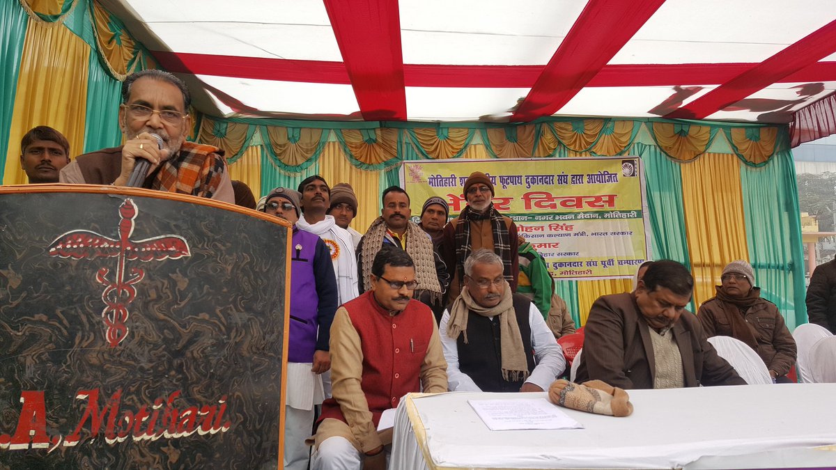 मोतिहारी शहर स्तरीय फूटपाथ दुकानदार संघ द्वारा नगर भवन मैदान में आयोजित भेंटर दिवस में फूटपाद दुकानदारों को संबोधित करते हुए। इस अवसर पर श्री प्रमोद कुमार जी पर्यटन मंत्री, बिहार सरकार भी उपस्थित थे।pic.twitter.com/5t3ZEzBFva