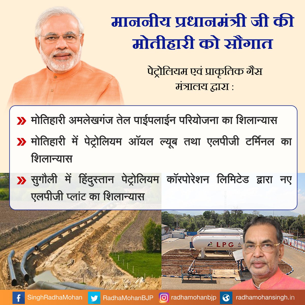 माननीय प्रधानमंत्री @narendramodi जी की मोतिहारी को बड़ी सौगात। @PetroleumMin की कई योजनाओं का किया शिलान्यास। #ChaloChamparan #चलो_चंपारण #ChamparanSatyagrahapic.twitter.com/eMB0ccznws