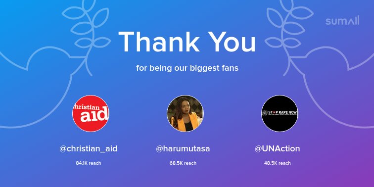 Our biggest fans this week: @christian_aid, @harumutasa, @UNAction. Thank you! via https://sumall.com/thankyou?utm_source=twitter&utm_medium=publishing&utm_campaign=thank_you_tweet&utm_content=text_and_media&utm_term=fd711726bb0e02f2dd03cd8b …pic.twitter.com/souBZ5BKZj