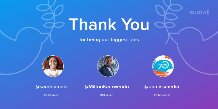 Our biggest fans this week: @sarahkimani, @MiltonKamwendo, @unmissmedia. Thank you! via https://sumall.com/thankyou?utm_source=twitter&utm_medium=publishing&utm_campaign=thank_you_tweet&utm_content=text_and_media&utm_term=fd711726bb0e02f2dd03cd8b …pic.twitter.com/HVrd60FVLP