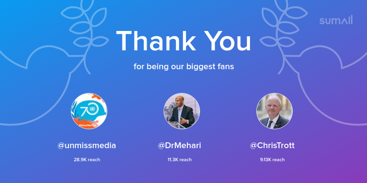 Our biggest fans this week: unmissmedia, DrMehari, ChrisTrott. Thank you! via https://sumall.com/thankyou?utm_source=twitter&utm_medium=publishing&utm_campaign=thank_you_tweet&utm_content=text_and_media&utm_term=fd711726bb0e02f2dd03cd8b …pic.twitter.com/gwdYZuJaJ4