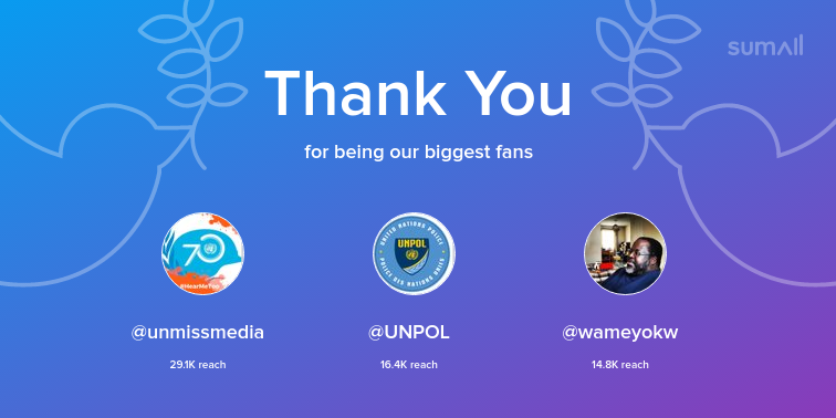 Our biggest fans this week: unmissmedia, UNPOL, wameyokw. Thank you! via https://sumall.com/thankyou?utm_source=twitter&utm_medium=publishing&utm_campaign=thank_you_tweet&utm_content=text_and_media&utm_term=fd711726bb0e02f2dd03cd8b …pic.twitter.com/BGMguOQILw