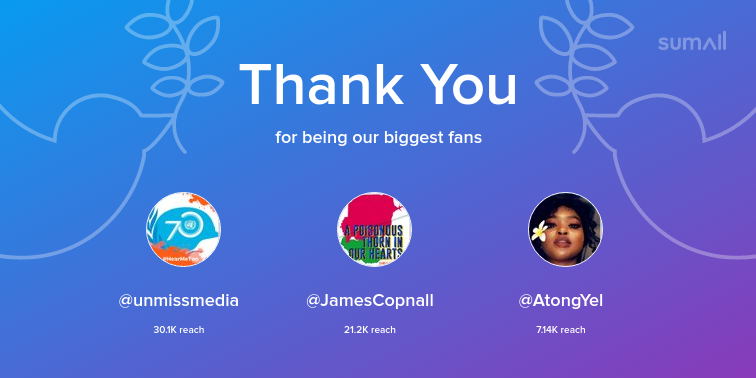Our biggest fans this week: unmissmedia, JamesCopnall, AtongYel. Thank you! via https://sumall.com/thankyou?utm_source=twitter&utm_medium=publishing&utm_campaign=thank_you_tweet&utm_content=text_and_media&utm_term=fd711726bb0e02f2dd03cd8b …pic.twitter.com/SXHXMmuASe