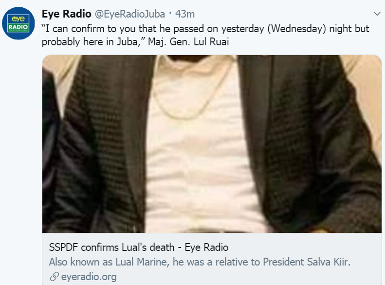 The man in the picture of this post is nothing close to Lual. It is a completely different person. You are threatening his life by sharing his picture when talkingg about someone completely different. Let's start there...