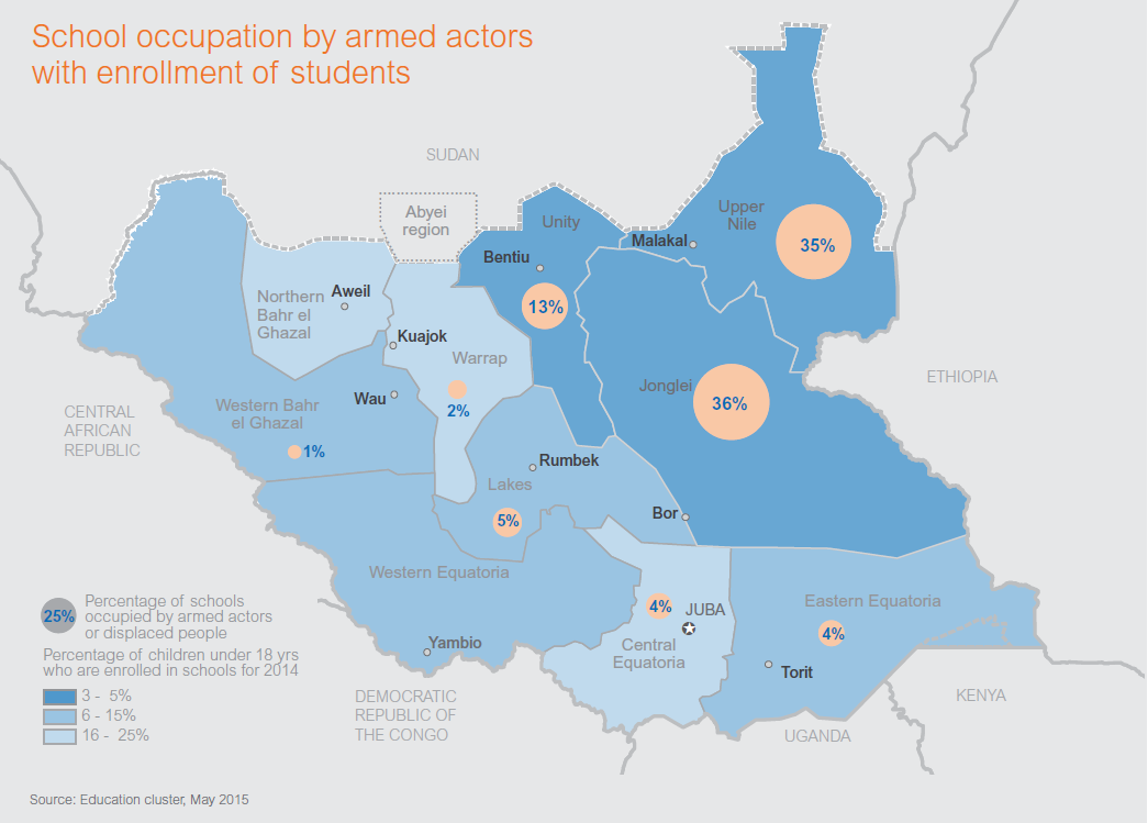 25% of schools in #SouthSudan are occupied by armed forces or displaced people @RefugeesMediapic.twitter.com/pU790GJ8vU
