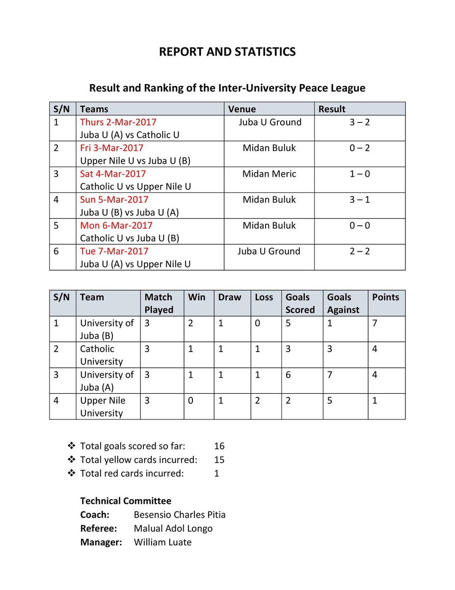 University of Juba Team B is at the top of the table in the past six games, followed by Catholic University @unmissmedia @TamazujSportspic.twitter.com/U5CqiAoEVm