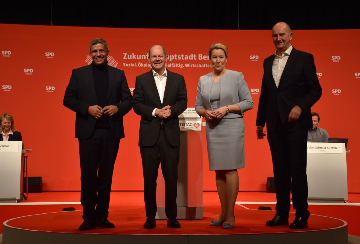 #spdberlin über das Ergebnis der Verhandlungen der vergangenen Wochen ab: unseren Koalitionsvertrag. Ich freue mich über unsere Gäste: den designierten Bundeskanzler Olaf Scholz und den Ministerpräsidenten Brandenburgs, Dietmar Woidtke.pic.twitter.com/Rt9HreROZk