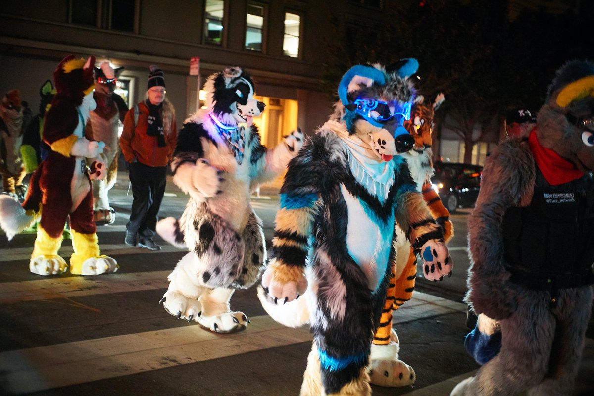 @MuffleTheFox captured a very nice adorable beastie lineup in the parking garage at the San Francisco Embarcadero New Years meetup last week. L>R: Rafiki,@Fylwind,@LeTigre_C,@RaftyHusky@BanditRaccoon1,@FolfKyrian and@2ManyStripes.pic.twitter.com/WbNtNDszbU