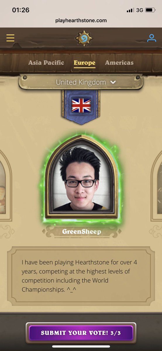 HGG voting is up , hopefully this picture of me sways you enough to vote me to represent the UK. You can vote here - https://playhearthstone.com/en-gb/esports/global-games/#CountrySelector … pic.twitter.com/8Xf7DKHr09