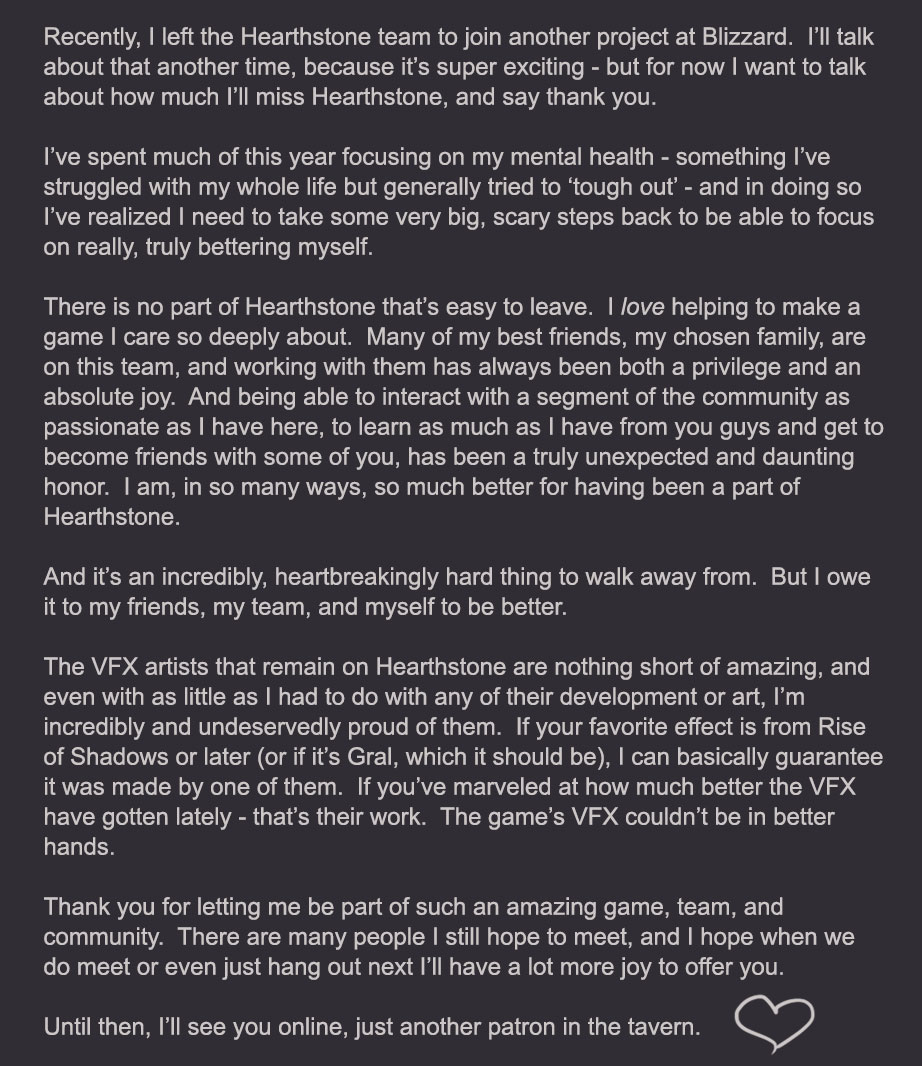 Another example of you guys interviewing Members of the Hearthstone team and them moving on. Please don’t interview @Celestalon any time soon