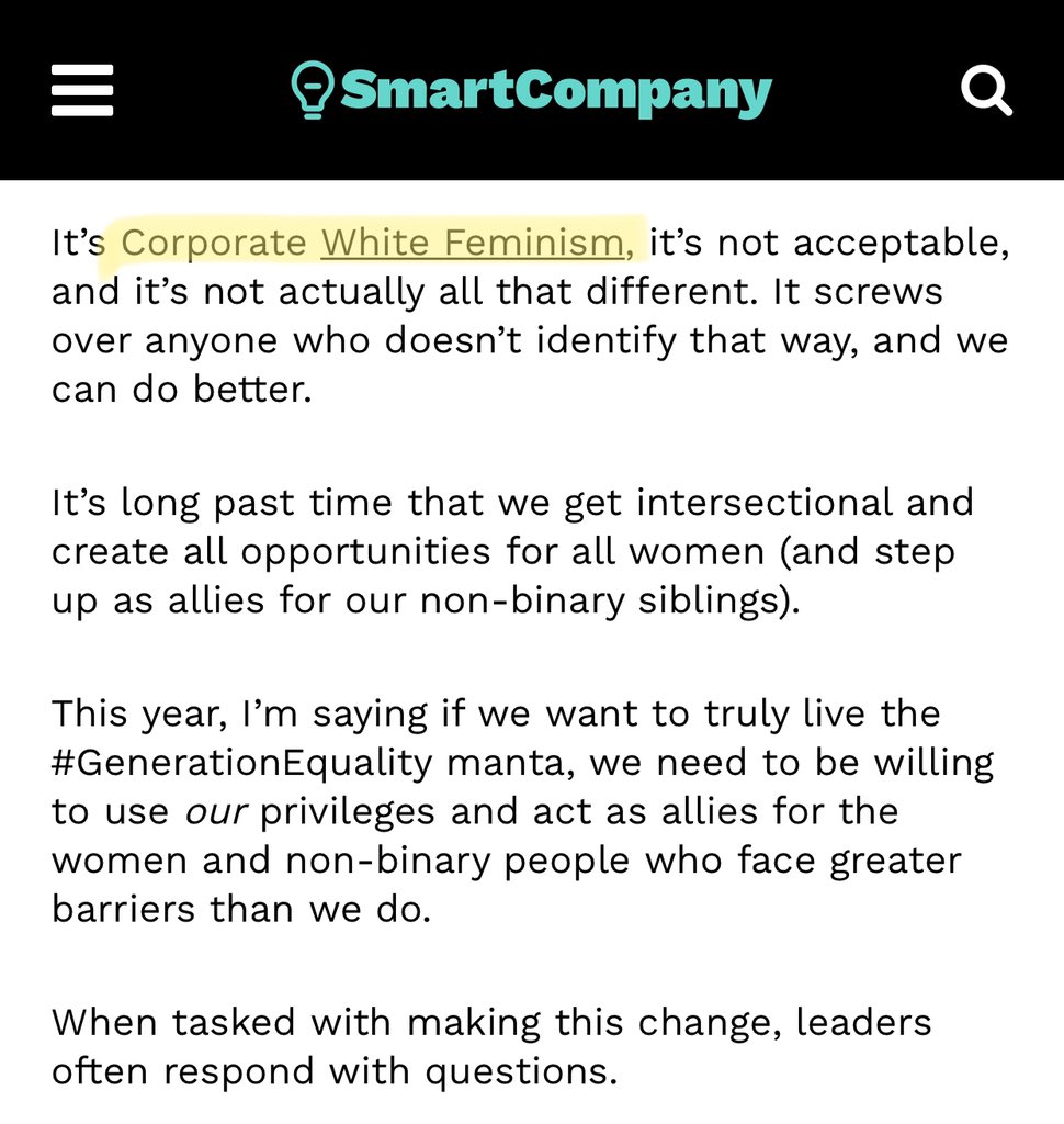 she can go first then...also corporate white feminism? does that not fly in the face of the gender pay gap outrage or is that one so last year?