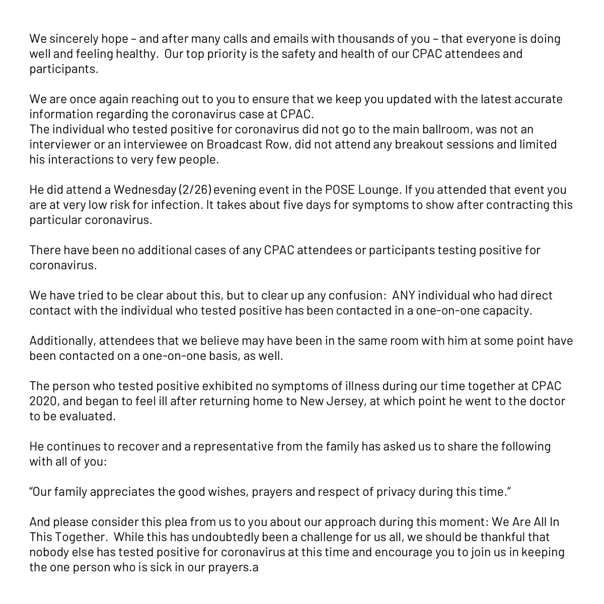 @mschlapp and@ACUConservative didn’t include a sentence along the lines of “we encourage any attendees to get tested”. Why is it so hard to include that? -