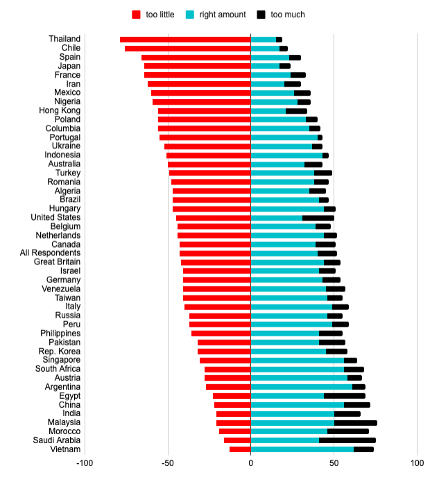 – 40% say govts are doing the ‘right amount’;