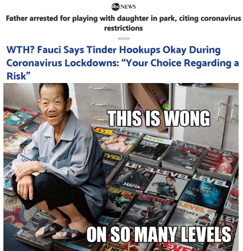 What? Here’s his change to stop pedopilia and dangerous exist hookups and he’s saying it’s okay if you’re willing to take the risk! Yet we’re all in a stay-at-home order or lockdown!! Don’t trust Fauci!