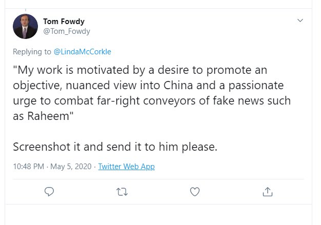 He’s still got me blocked can someone plz ask @Tom_Fowdy where we can get a request for comment into? Big article on his CCP work coming and only fair he has a right to respond! Unlike him, I’m ethical in my work! Does this look like opinion or govt propaganda? ⬇️pic.twitter.com/u6xfxjYi21
