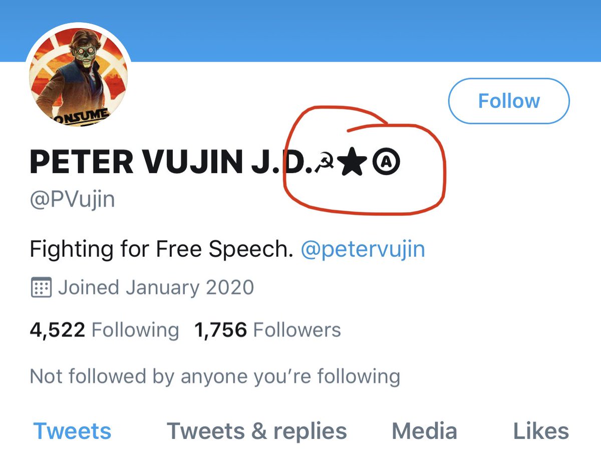 And he fights for free speech with the symbol of communism!