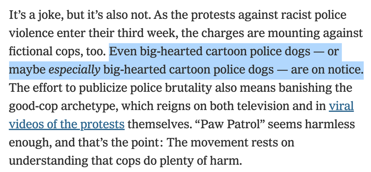 Paw Patrol has not been taken off air, but the cartoon about lovable canine law enforcement has faced "cancellation" in the figurative sense. See the New York Times below:pic.twitter.com/Ni2EtrpRYF