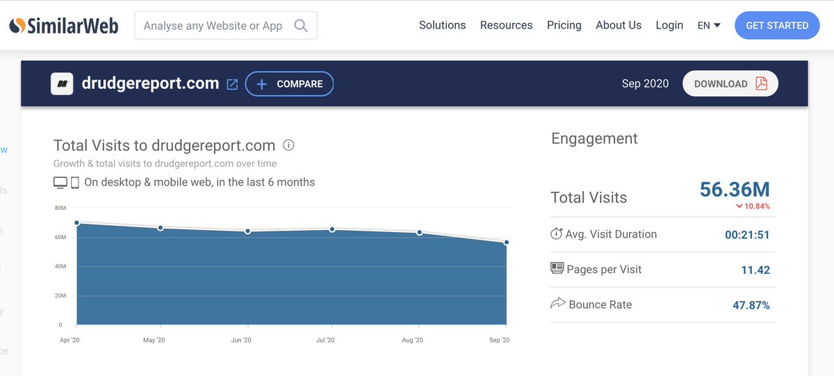 I was a Drudge addict in the past. My first and last web site I visited. Today: I haven't looked at that trash in months!!