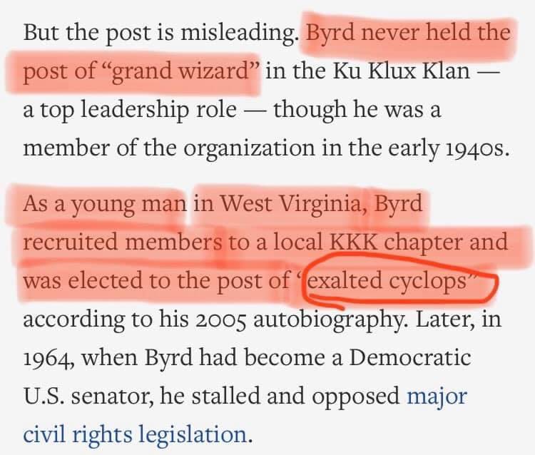 Byrd was aghast the invasion of Iraq had been approved w/so little debate. Whatever his earlier misdeeds, he opposed the US starting a war which killed 100s of 1000s & displaced 10s of millions.https://twitter.com/mwiik/status/1315315982513176584 …