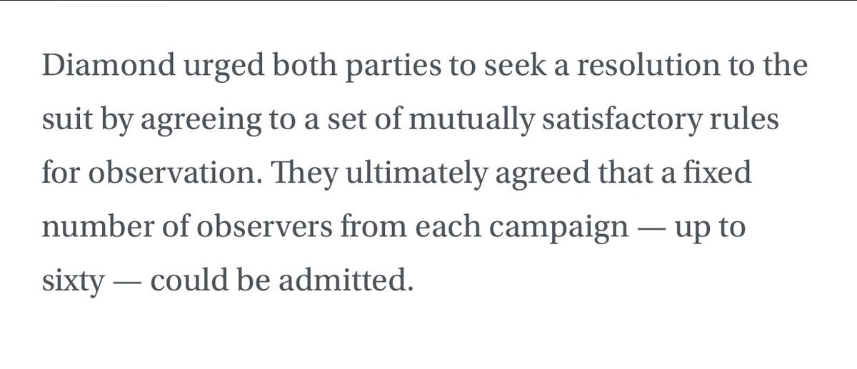 It is a flat-out lie that Republican observers were not allowed to watch the counting of ballots in PA. Republican atttorneys have acknowledged it in court. https://whyy.org/articles/trump-asks-federal-court-to-stop-vote-counting-in-phiadelphia/ … Republicans have been present here in Allegheny as well.https://twitter.com/RudyGiuliani/status/1325410570703679489 …