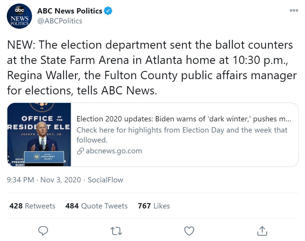 Fact checking doesn’t mean what it used to. Fact checking agency Lead Stories claims there was no announcement to the media or observers about Fulton County ballot counters needing to leave. They are wrong.pic.twitter.com/veFtmqt4Ir