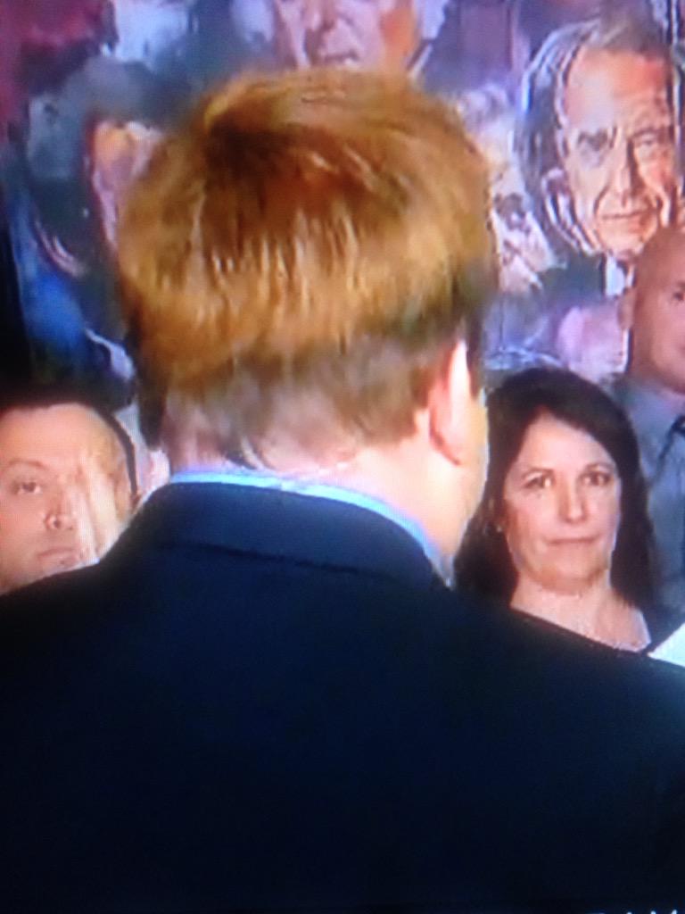 FRANK LUNTZ JUST FLIPPED HIS WIG . REPORTS OF TAPE AND SKIN TAGS FOUND FOR BLOCKS. ONE WITNESS SPOTTED THE TOUPEE REMARKED "I THOUGHT IT WAS A DEAD SQUIRREL